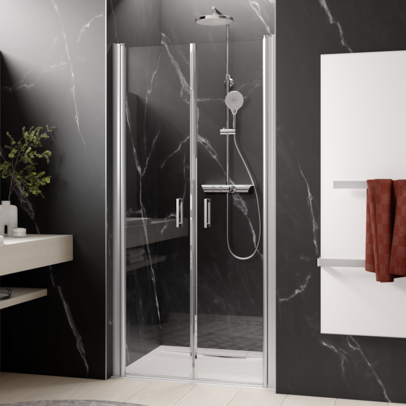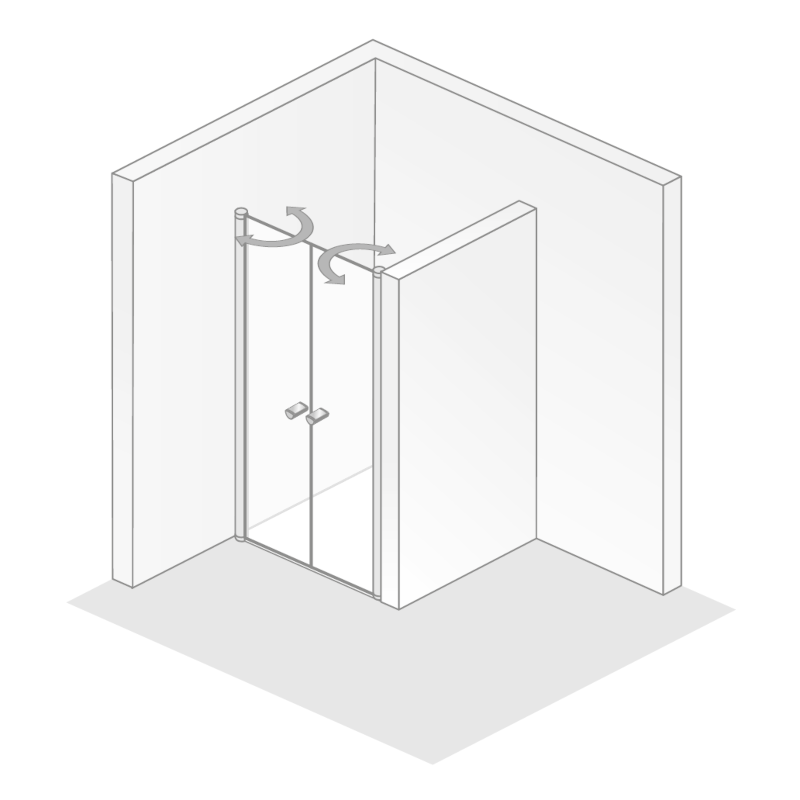 Eine Nischenlösung mit zwei Pendeltüren ist ideal für beengte Bäder. Der praktische Heb-/Senk-Mechanismus der Duschtüren sorgt für eine zuverlässige Dichtigkeit und hervorragende Handhabung.